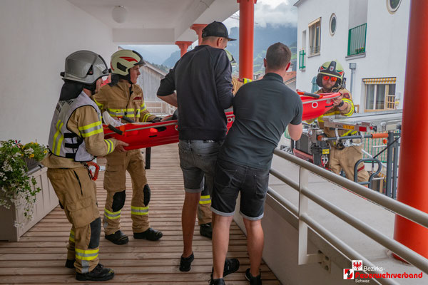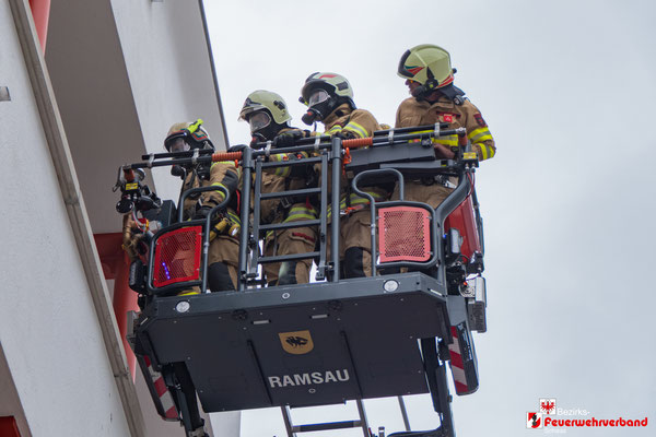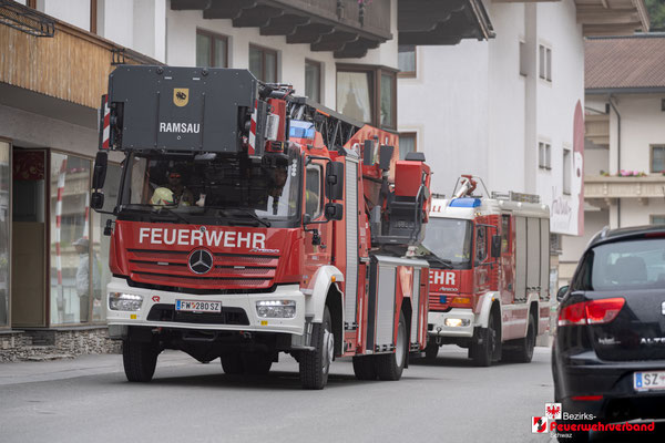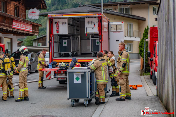 Der Einsatzleiter ließ daraufhin umgehend weitere Atemschutztrupps und Drehleitern der Feuerwehren Ramsau i.Z., Hainzenberg, Gerlos, Laimach und Aschau i.Z. nachalarmieren. Ebenso wurde das