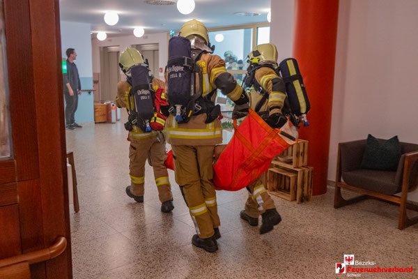 Mehrere Atemschutztrupps drangen in das Gebäude vor, um die Menschenrettung durchzuführen. Unterstützt wurden sie vom Pflegepersonal des Altersheims, zwei Drehleitern und den Einsatzkräften des